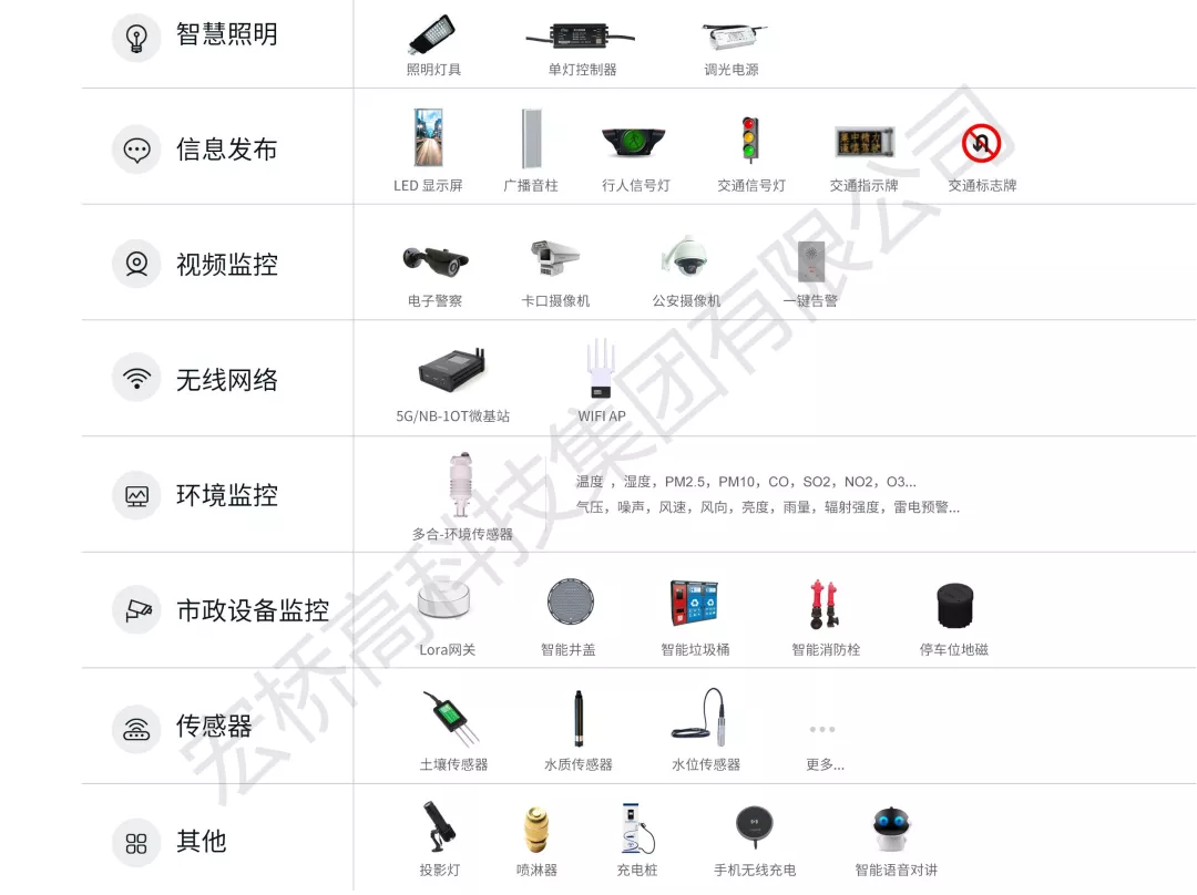 宏橋智慧燈桿上各桿載設備以模塊化方式高度集成,無縫接入平臺,客戶可根據(jù)不同需求進行靈活選配,并無限延展其他功能……